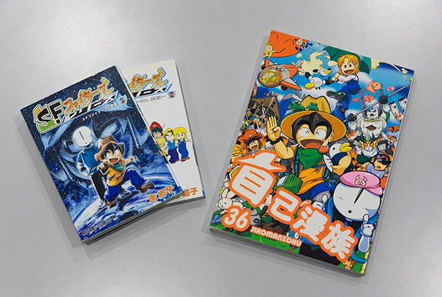 『SFファイターズ』:漫研時代に自分が描いた漫画を総集した自作の同人誌。 『自己漫族』:漫研が年1回作成する部誌で、表紙を担当(2008年度)