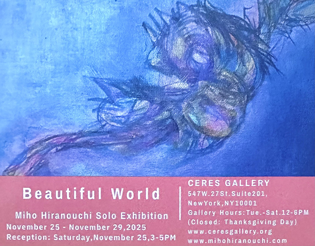 NYを拠点に日本やヨーロッパなどで作品を発表アーティスト平之内美穂の個展が11月25日(火)から11月29日(土)までチェルシーのセレスギャラリーで開催される。