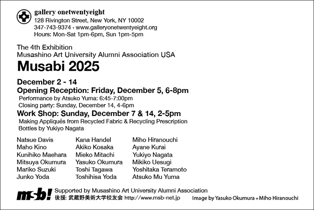 武蔵野美術大学校友会アメリカ支部が主催する展示「第4回Musabi展USA支部」にてオープニングレセプションが行われました。 その様子がYouTubeにて公開されています。