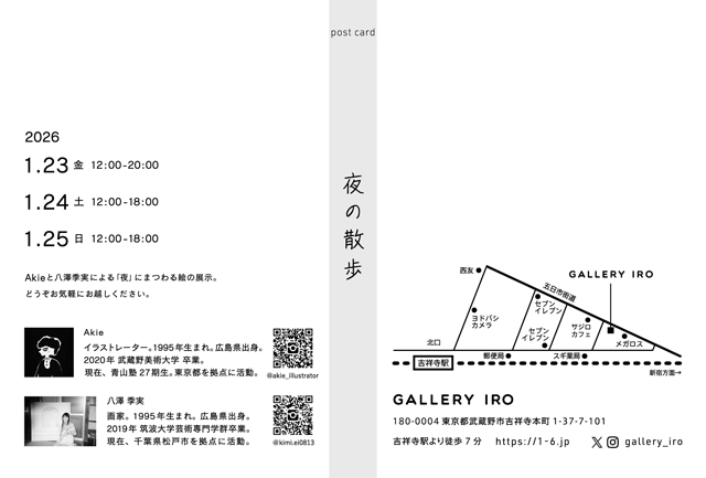 Akieと八澤季実による「夜」にまつわる絵の展示。
